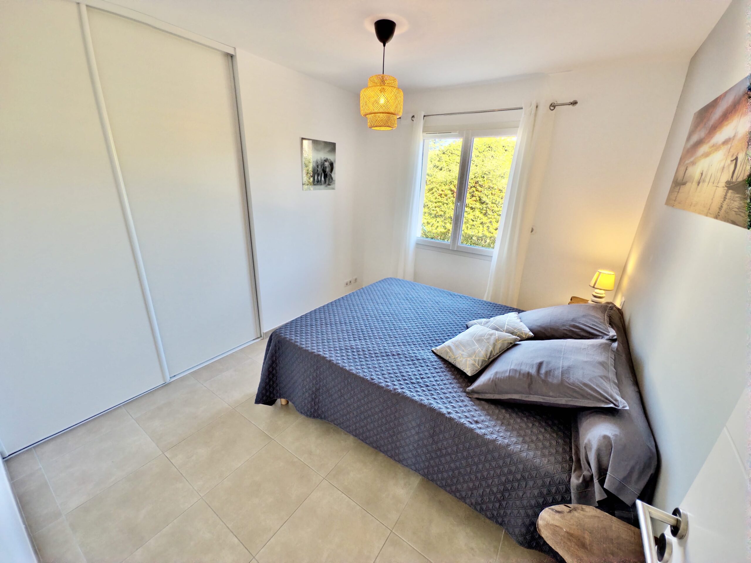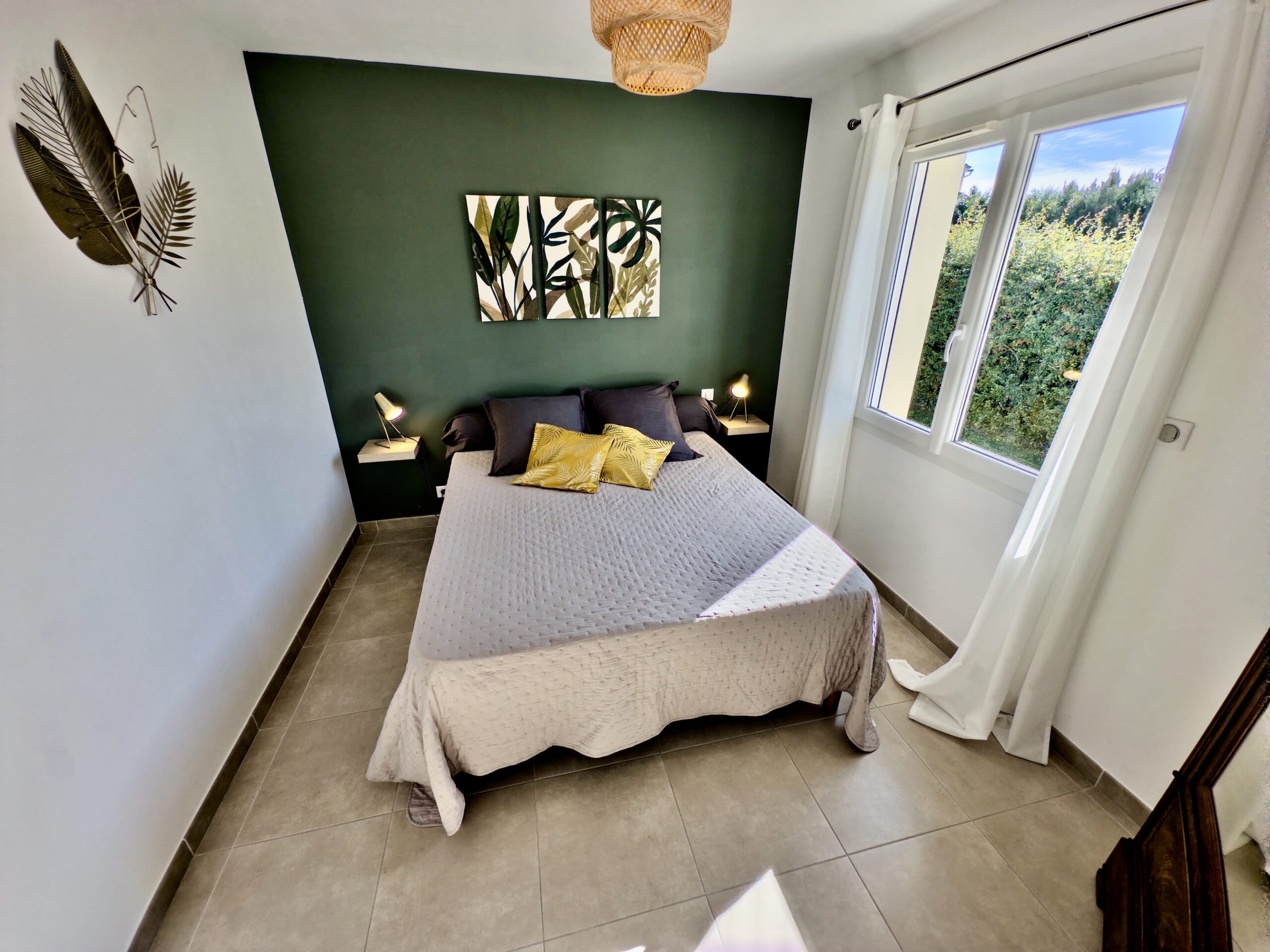 Chambre double lumineuse et élégante, pensée pour le confort et la détente. Elle dispose d’un grand placard et bénéficie d’un accès direct à une salle de bain située à proximité, équipée d’une baignoire, d’un lavabo et de toilettes.